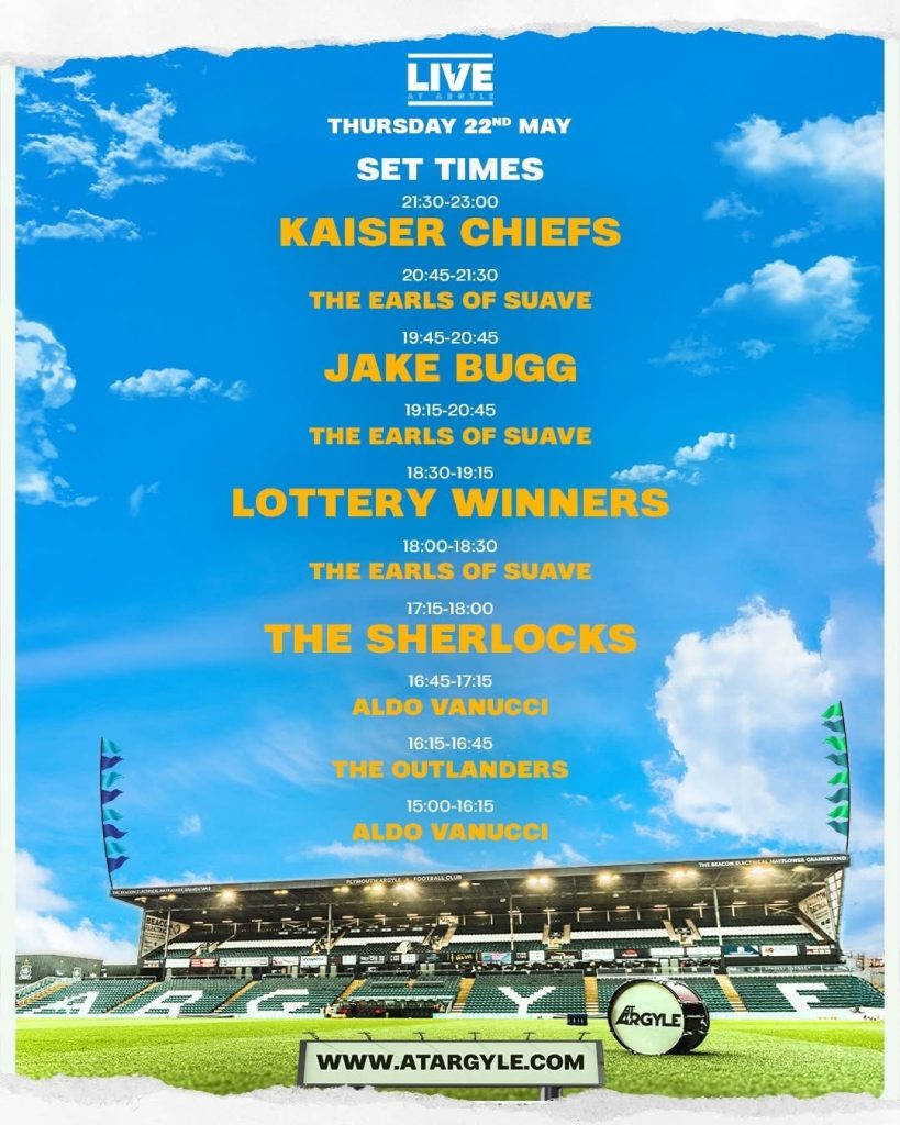 Our May Bank Holiday of events starts on Thursday with LIVE at Argyle. Kaiser Chiefs headline the concert to celebrate 20 years of their debut album, ‘Employment’ which saw the band instantly thrown into the mainstream with hits ‘Everyday I Love You Less and Less’, ‘Oh My God’, ‘Modern Way’ & ‘I Predict A Riot’.