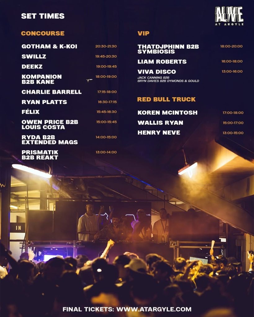 Saturday sees the return of ALIVE at Argyle. Massive international acts including: Gorgon City, Armand Van Helden, Ben Hemsley, Ben Nicky, will take to the stage to keep you dancing throughout the day.